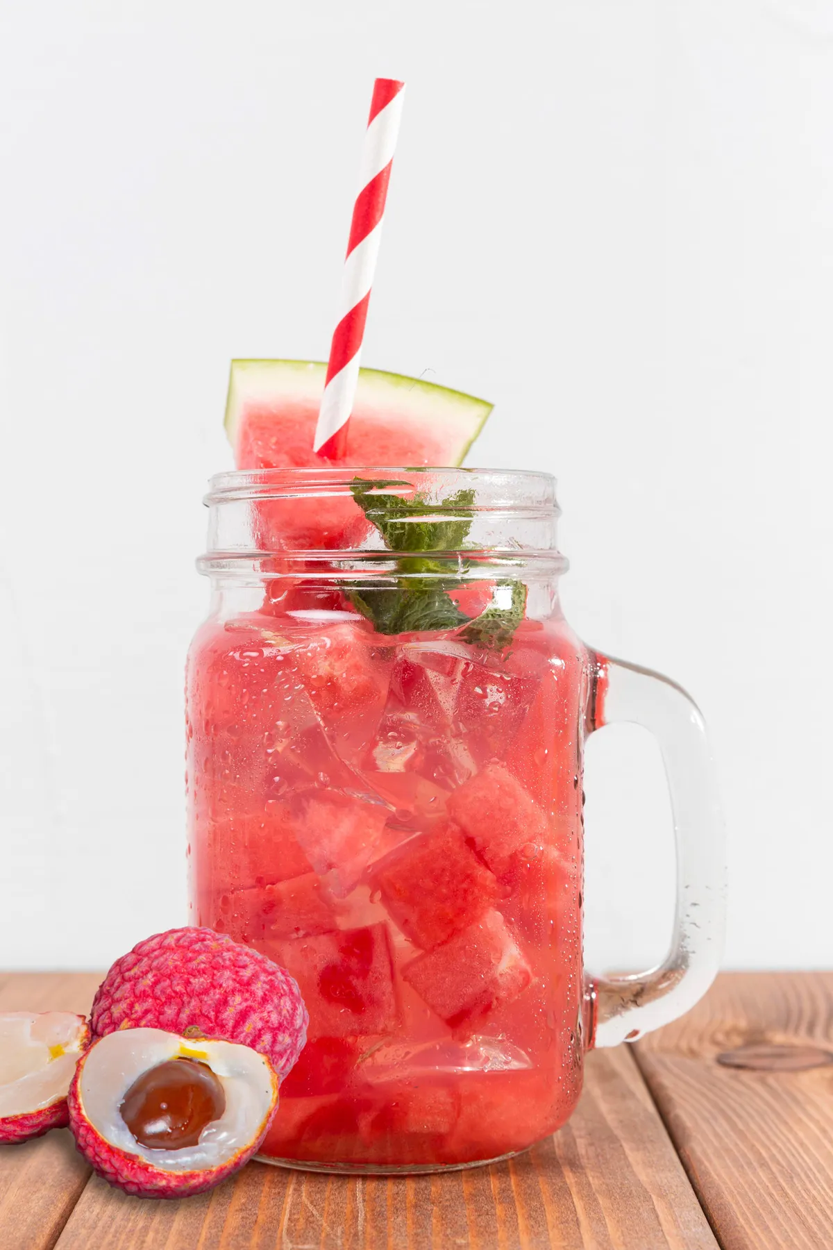 ● 1 liter cold water or sparkling water ● 200g La Siberia lychee watermelon honey ● Lychee pieces ● 1 cup ice cubes